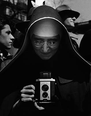 General McArthur was in a parade in our city and I was assigned to cover his visit. I saw this nun ready to photograph and documented her. Only later did I see that she was photographing me as I snapped her. |