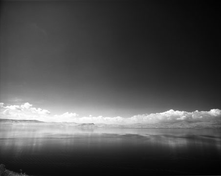 The medium of photography demonstrates the fact that light itself is not visible until it reveals something. I work primarily with black and white infrared film, because it enables me to articulate the contrast between illumination and darkness or soft and sharp and to enhance a meditation upon the fleeting nature of the moment. This film is sensitive to infrared light (not visible to the human eye) as well as to the visible spectrum. Objects reflecting significant concentrations of infrared energy will register greater density on the film's negative, thereby causing that respective counterpart in the print to appear lighter or more ethereal. The resulting shift in tonality emphasizes those dreamlike or mysterious quali Íties I seek in my work. In 2001, as part of a Cultural Arts Exchange, I had the opportunity to work collaboratively with an artist from the Kinneret region of Israel. This led to the creation of a permanent installation at the Poriya Government Hospital near Tiberias. Together with my partner in this project, I explored the local landscape and considered its historical significance as it has related to both natural phenomena and conflicts over thousands of years. Since then, I have traveled to Israel five more times. The echoes from the past reverberate through my minds eye and my soul in ways which I might have expected beforehand but could never fully appreciate without actually being and working there. Bruce Feiler has written about his similar experiences in his book "Walking the Bible." My photographs in this exhibition are but a glimpse into this awakening. These photographs are printed from film I exposed in January, 2003 ("Israel-03-3") and February, 2003 ("Israel-03-13"). |